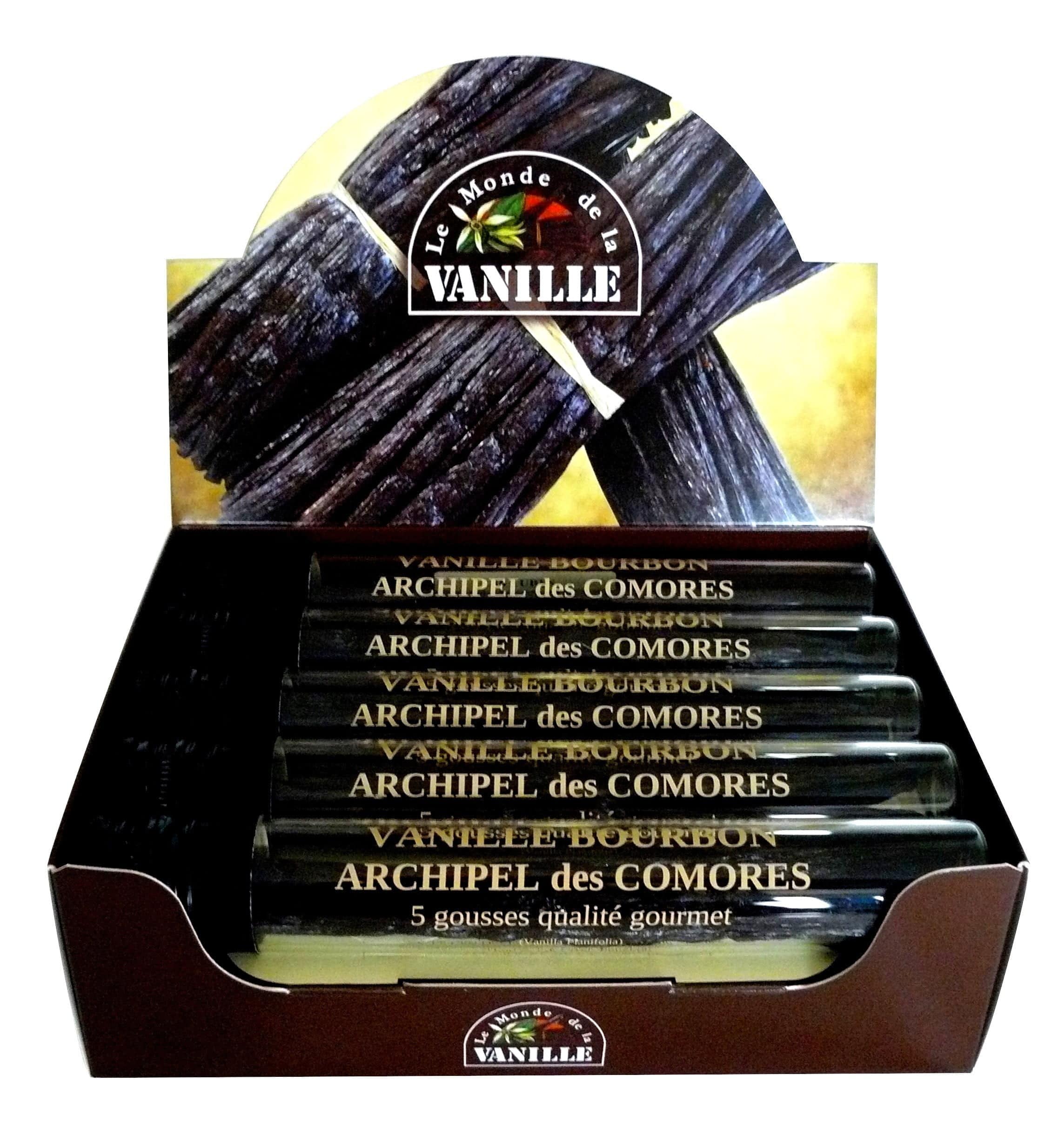 Le monde la Vanille Origine Comores présentoir Tube gousse de vanille