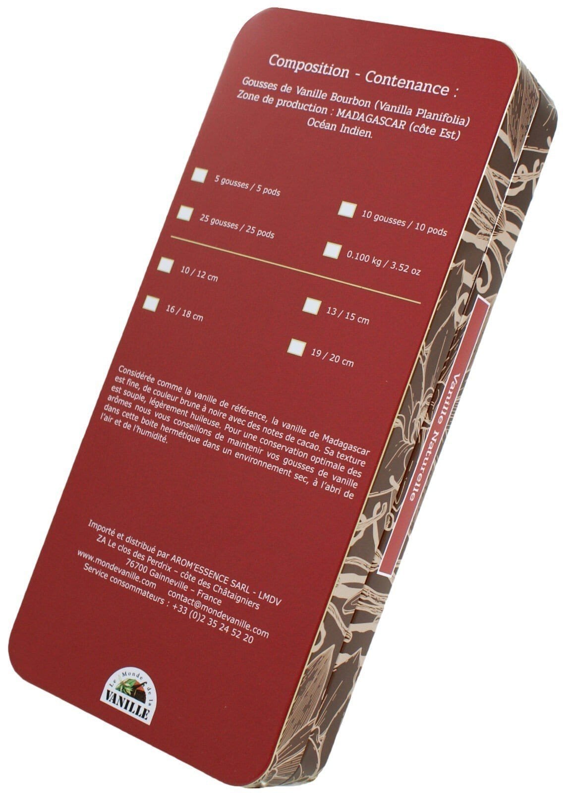 Le monde la Vanille Origine Madagascar Boite métal gousse de vanille
